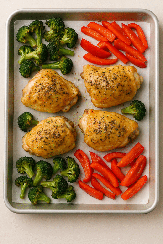 This sheet-pan dinner is the definition of weeknight sanity-saver. With juicy chicken, caramelized veggies, and minimal cleanup, it’ll become a staple in your rotation.